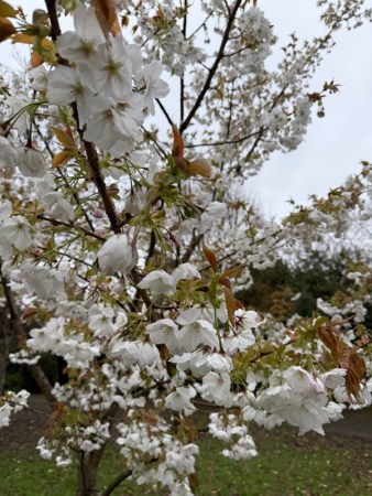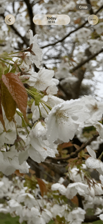 I wanted to describe the colour and texture of the freshly bloomed blossom on the trees in the Park Road Gardens, just outside the small town centre in Grange-over- Sands, on the northern end of Morecambe Bay.