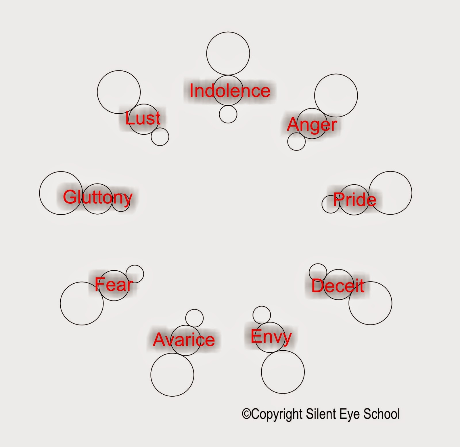 “Quite right . . . that’s because modern esoteric psychology has come up with an extension to the sins which gives us a great insight into how each type of person looks at the world – their own world.”