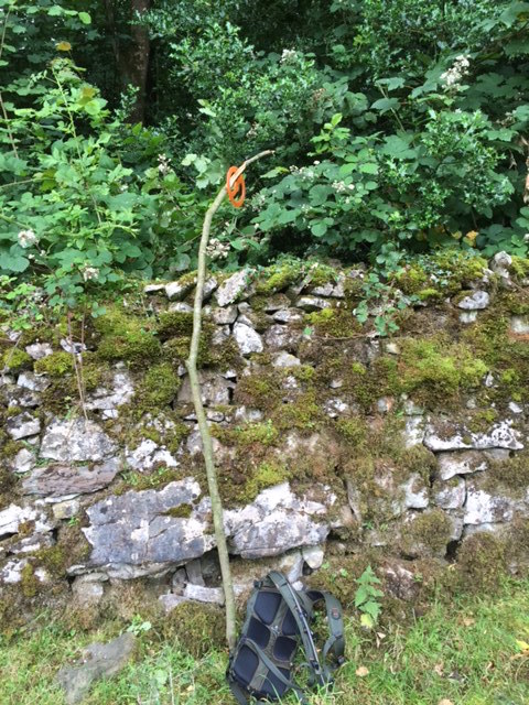 Brambles – higher than the wall, dense and menacing as only the most virulent Cumbrian monsters can be. There was no chance of even locating the orange aero-thingy, let alone recovering it. For a second I wavered, then, with a mixture of expletives and a level of energy that surprised even Tess, I jumped back off the wall and made my way towards a fallen tree nearby. It was the work of a couple of minutes to break off a long branch. Then, still snarling, I scaled the wall, again, found a tentative perch and used the long branch to part the green spiked triffids.