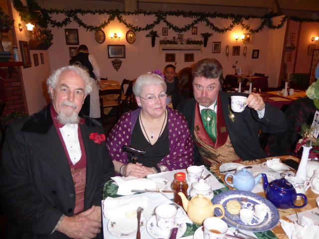 Three of the organisers of the Dickens Fair – Left to right: Robert Young (aka Mr Dickens), Diana Young – playwright; and the front of house Director of the event, Kevin Patterson.