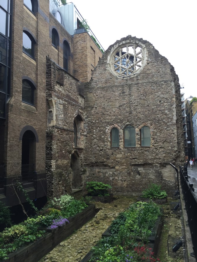 These ruins are all that remain of the home of the very powerful Bishops of Winchester, among the most influential figures of medieval London. They lie one street behind the Thames, in a densely developed area which beautifully balances leisure, housing, dining and entertaining, using a human scale of construction that maximises the re-use of existing resources, such as redeveloped warehouses, leaving history and culture not only intact, but adjacent.