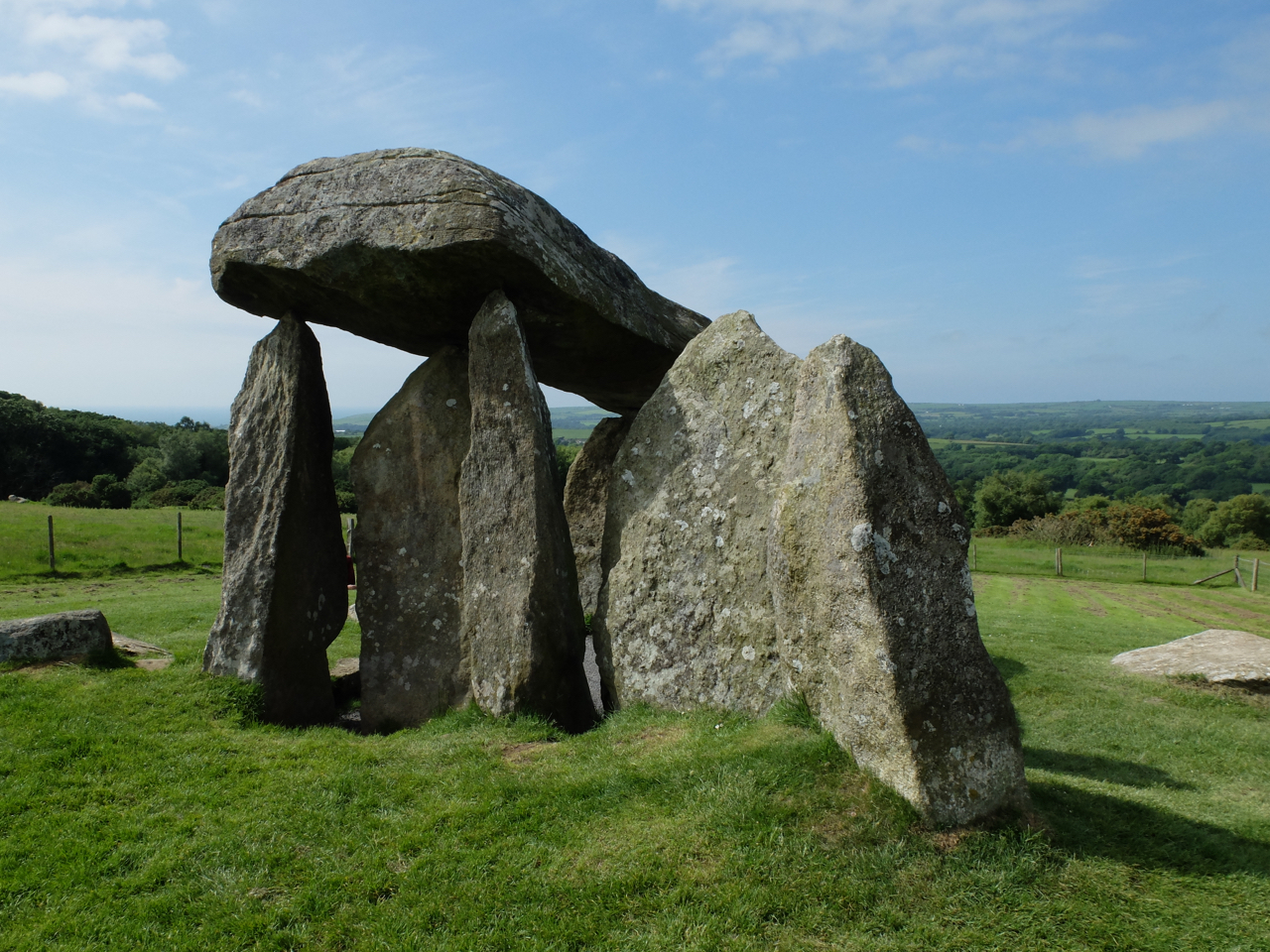 The enormous capstone, nearly 17 feet long, weighs over sixteen tons and is supported on just three stones, as can be seen in the above photograph. It is believed that the juxtaposition of supporting and non-supporting stones was part of the design of the dolmen.