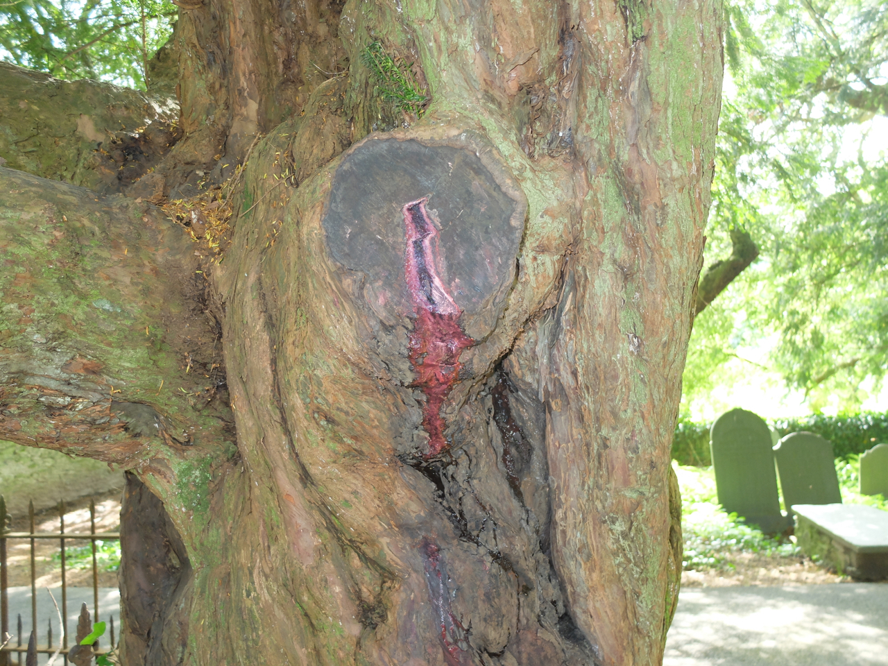 The church is most famous for one of its many yew trees, near to the gate, which is called the “Bleeding Yew”. The yew tree is about 700 years old, which is extraordinary in itself.