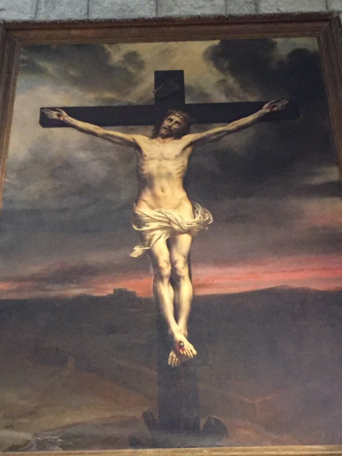 The high altar is framed by the main east panel that is beautifully crafted in Baroque déco style and takes up nearly the whole of the Eastern wall of the building. It is too ornate for my taste, but I can acknowledge its finery.