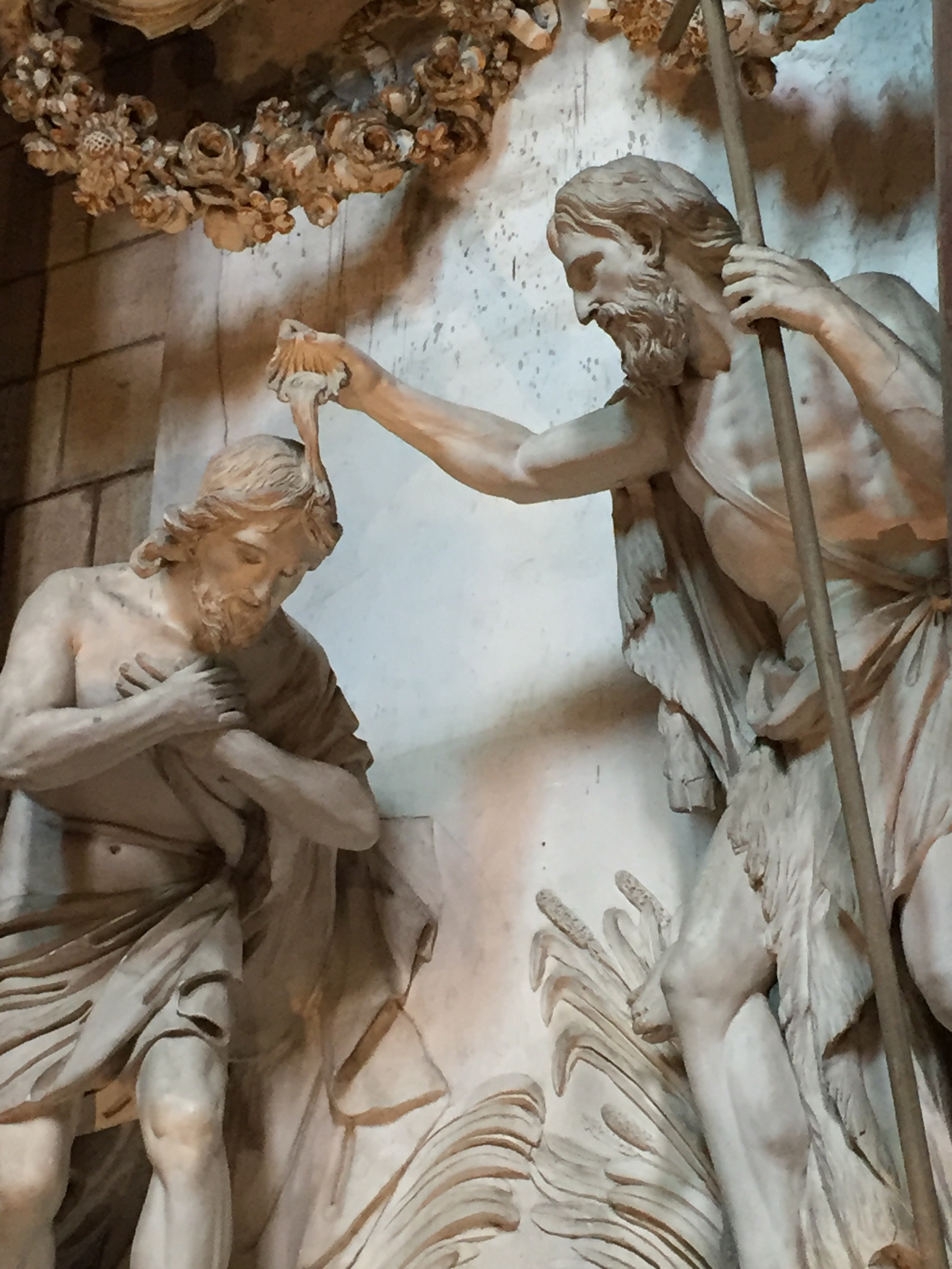 One of the most moving chapels in the north-west of the nave depicts the baptism of Christ by John the Baptist. It was key moment in the Christ story, and the symbolic acceptance of his mission is beautifully portrayed in the stance and the faces of the two men who knew well what they were doing, on both the spiritual and physical levels of their lives.