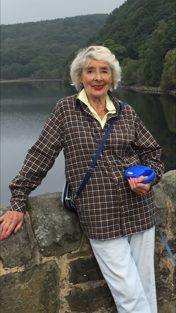 Even now, she walks her golden Pomeranian dog, Sammy, for several miles each day. Whenever we can, we get her up to our home on the edge of the English Lake District. Her joy in the lush green hills of the Lakes is palpable…and you can feel her drinking it in.