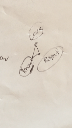 He drew a third word, ‘love’, above the other two. “The work, the respect, the knowledge, build love when they are applied each day to: knowing myself; knowing others; knowing God – this builds love, and love reveals…”