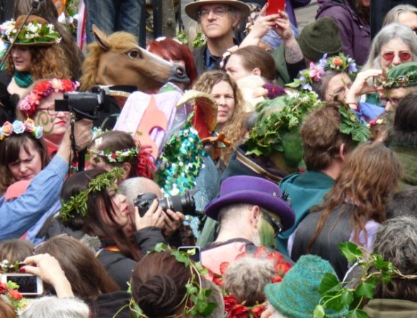 Sunday morning, Beltane, the first morning of May…and we were in Glastonbury. After a leisurely breakfast, Alienora prepared for her role as Priestess in the morning’s proceedings. We would meet the others in the town for the start of the day’s festivities. By the time we arrived in the town, the place was already buzzing.