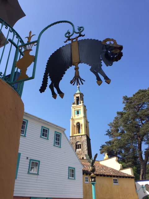 Most of the tourists passing through the gate miss the bronze completely. And rightly so… They are here to see the architectural masterpiece created over a forty year period by Clough Williams-Ellis, whose own lifelong passion was the real village of Portmeirion. Even the official guide, leading our group, does not pause at the McGoohan statue, yet someone in power, here, viewed him important enough to justify the creation of it by Tiziano, and its donation to the village. Like the man and the bee, it occupies another, parallel realm, with a modern mythology so strong that a good proportion of Portmeirion’s visitors every year still arrive in search of its ‘McGoohan secrets’…