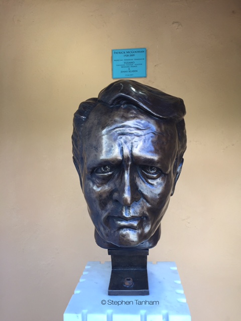 There is so much going on that you can miss him on the downward leg of the guided introduction to Portmeirion. In a world of the strangely beautiful, one in which the normal laws of constructing a ‘village’ have been changed, there is simply too much to see to notice the quiet, deeply bronze head of Patrick McGoohan.
