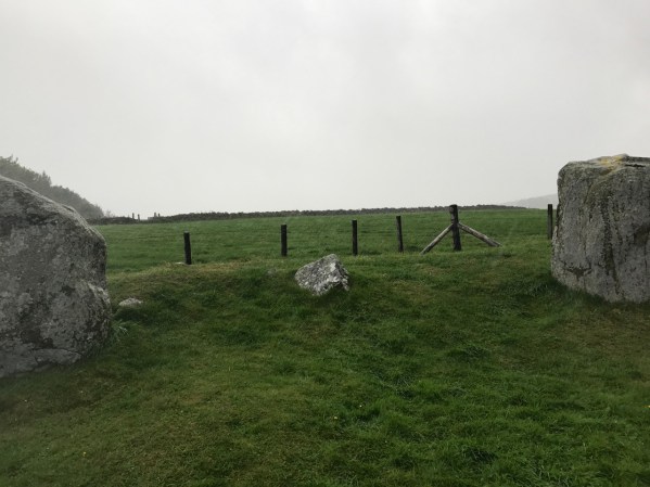 I walk back and re-take my place. The glowing intensifies, but I haven’t told anyone yet. Such things do not normally happen to me in stone circles. Allan is smiling up the slope at me and points over my shoulder at where the conical mountain is hiding in the mist.