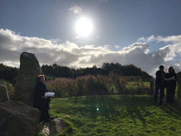 It’s hard not to grin when he does this. You know he’s speaking from a position of great knowledge. You sense that this professional man, whose career is centred on exactness, is about to say something precise. His shaman staff is white and quite short–a contrast to his own considerable height. He points it at a position in the South-East, where the horizon is hidden behind a cluster of young trees. “On the winter solstice, that’s where the sun rises.”