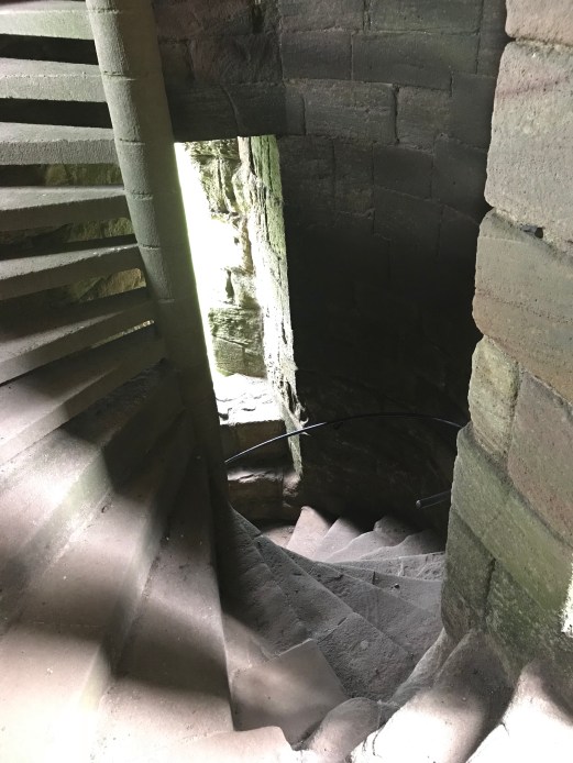 The dark, jagged vision grows as we walk. Back in the winter, when Bernie and I had come this way to explore the possible sites for the weekend, I could find no words to express that distant starkness. Now, one of the Companions did: “It’s as though it was deliberately punished, in such a visible way that no-one could ever forget…” History shows that, actually, it wasn’t. The ravages of time, neglect and a life on a Northumbrian cliff did that. But, emotionally, it looks exactly like a ‘punished place’, and that serves our ‘psychological’ purpose, here. The nature of the illusion lies in the mystery of the shapes used in its architecture…