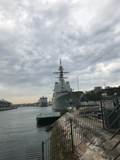 Harry’s Cafe de Wheels lies at the pivot between the restored cargo dock and the modern naval base. You can walk right past the base and round to the King’s Cross section of town, but photographs of that part of the base are prohibited.