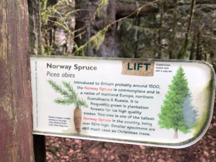 Many of the tallest of the Reelig trees have information ‘wings’ that fold out from slots in vertical posts.