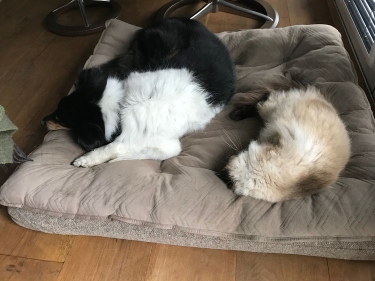 Yes, and I meant to say that Little man, while he is dear, is also deaf. Somehow he is not a threat to Yao Yao, and they sleep close together.