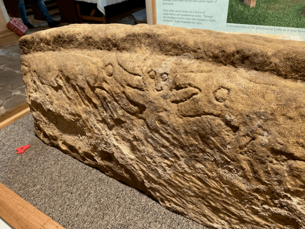 (Above: Close up of the ‘Gingerbread Man’ hogback stone, one of the museum’s primary exhibits)