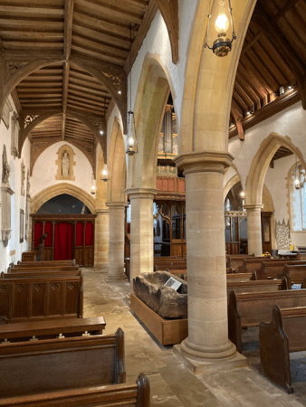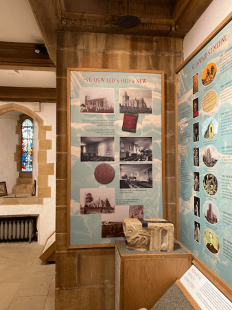 Mention needs to be made of the striking stone coffin that sits among the pews in the main body of St Oswalds.