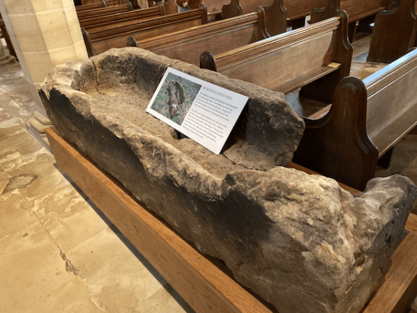 (Above: The restored medieval stone coffin at St Oswald’s church)
