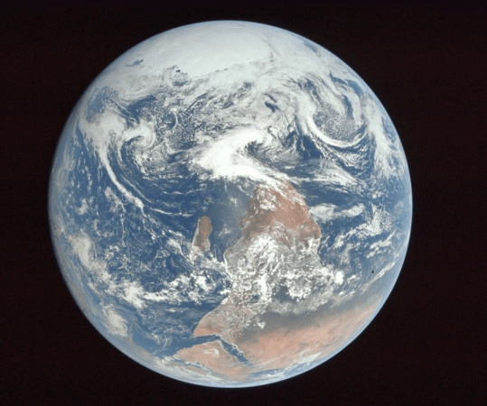 (Above: This famous 1973 shot of the Earth, done by an astronaut who was upside down, was actually taken with south at the top. NASA decided to flip it to a normal north-up orientation before its release. Image NASA)