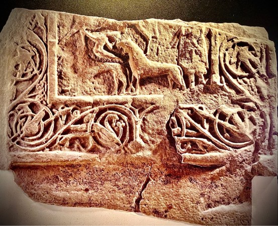 (Above: Portmahomack, the regional centre for stone working, did have its own Pictish cross slab, but it was destroyed by Vikings. Only this lower fragment remains…)