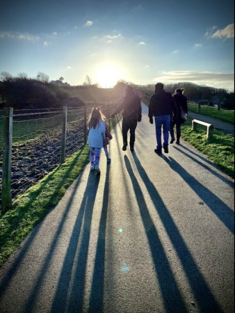 The opening shot was taken while walking behind a family. It was a Sunday afternoon and we had been strolling behind them on the promenade at Heysham. As the prom approaches the village, it climbs steeply up a small cliff. At that point, the shadows in front of us, cast by the early setting sun, became extended. I had finished taking photographs for the day but I grabbed the camera from my coat pocket and pressed the shutter – not even sure I’d get a shot. I was delighted with the sheer joyfulness of people and shadow this produced.