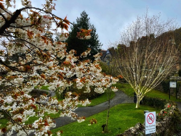 No such luck with this one, taken at Grange-over-Sands, yesterday. The sky was gloomy, but it did highlight the lovely colour mix of the deep green and the delicate, linen-like texture of the blossom.