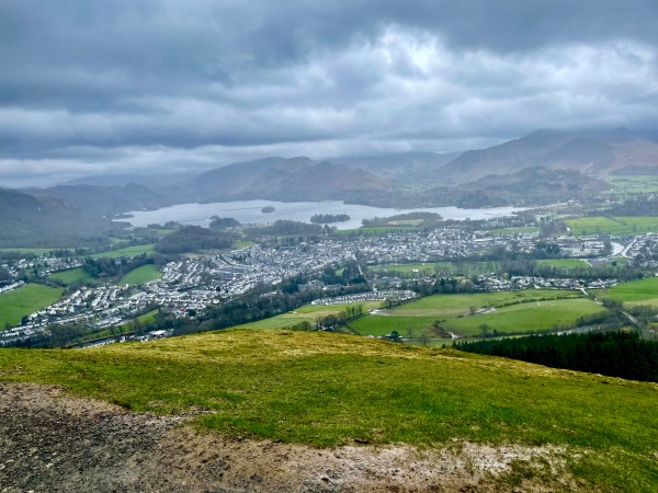 At least, that was the plan. The photos, below, taken during the recce day in April show how wonderful the views are from the path edge facing Keswick and its two lakes.