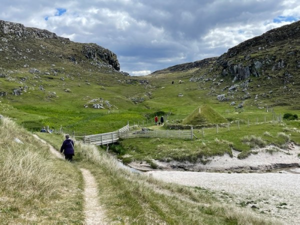 Along the way there are marked walks to Dun Bharabhat (a well-preserved small broch), the renovated Norse Mill and the west coast circular walk starting at the Community Centre and going via Bosta.