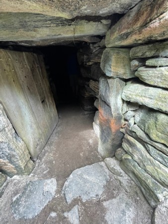 The entrance passage was curved to break the strength of high winds and sloped from ground level to the interior floor level. The purpose of the small secondary chamber is unknown. The main living space may have been subdivided into living and sleeping areas. The small space may have been used by the women for their work.