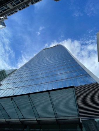 The odd-shaped tower block – background right – is the building in question. Its name is simply The Fenchurch. It’s also known, irreverently, as the ‘Walkie- Talkie’. Those who remember the first generation of mobile phones may want to add a third moniker…