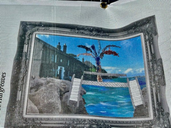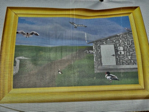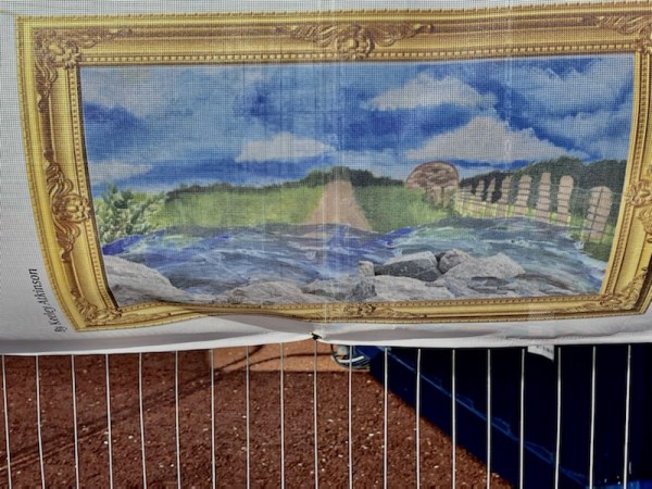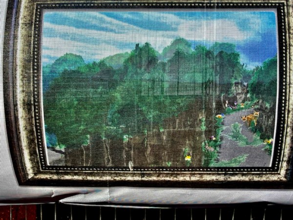 The picture have been printed onto a fabric sheet that wraps around the fencing, so their rendering is subject to breeze distortion.