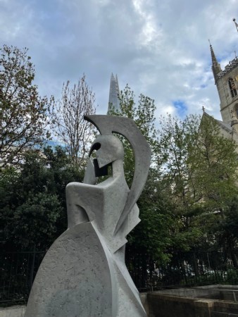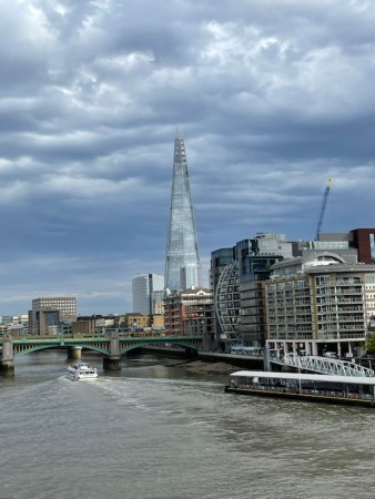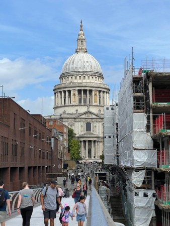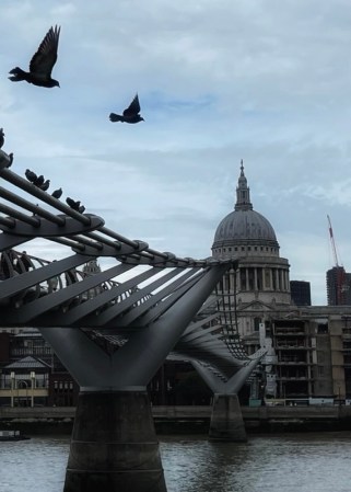 The guide points to St Pauls, in the distance. She also asks us to consider the mighty river, the Thames. She tells us it represents time and that our personal evolution happens in time…
