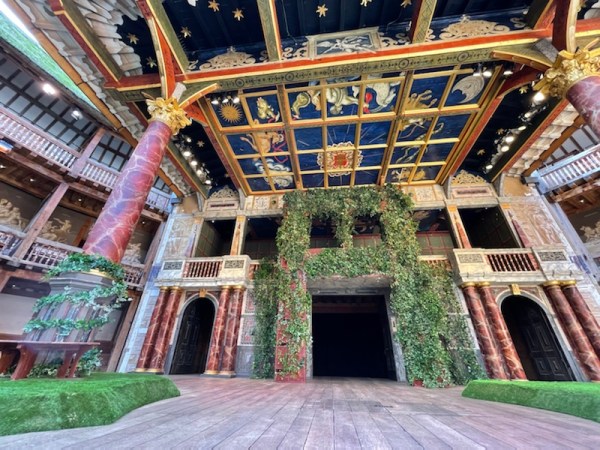 And the we are suddenly ‘in the arena’… and the light is bright. All around us the world of this Globe is alive. Directly ahead of us is a huge platform over the main stage. This was for the rich and titled of the day, and, though they could not see the stage below, they achieved their purpose – which was to be seen in their splendour. Perhaps little changes…