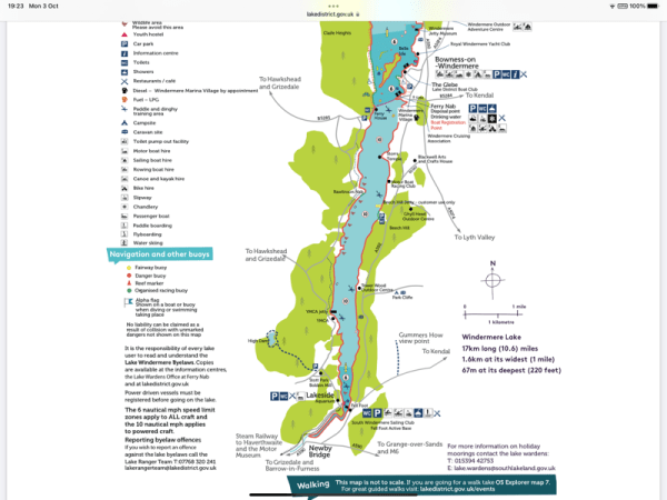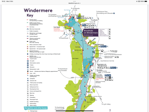 The two photos of a tourist map of Lake Windermere show the location of the lake’s towns.