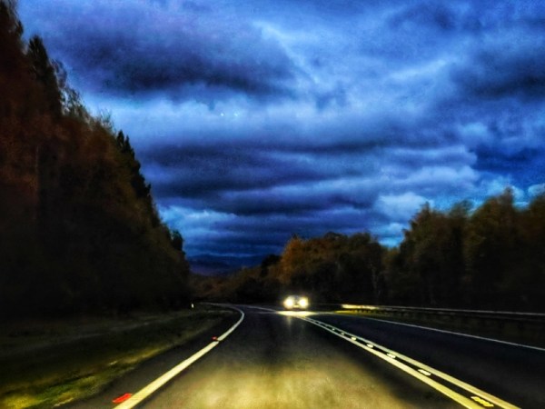 We have just finished a long drive to the Scottish Highlands for a short break to get Tess away from the infernal Bonfire Night firework bangs. I took the first leg from Kendal; Bernie drove from Perth, allowing me time to try out my experiment on the darkest part of the journey as we approached Inverness on the long and winding A9.
