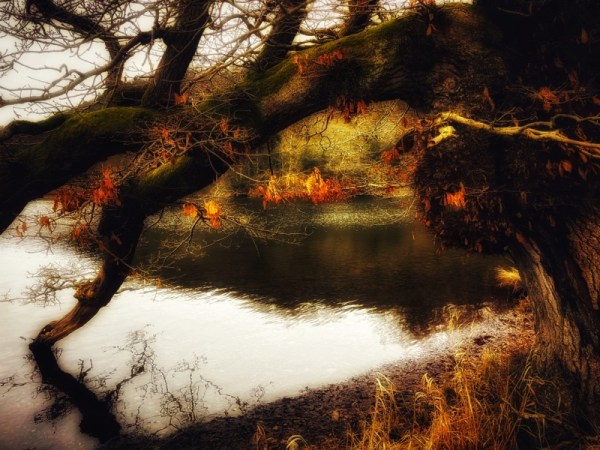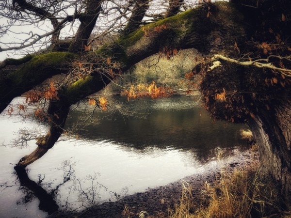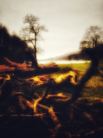 An old overhanging oak, near the end of the lake at Newby Bridge, looked promising. I explored different captures and settled on the above framing, then used examples of the same settings – varied in two stages- in Snapseed as the previous ‘winter fire’ shot.