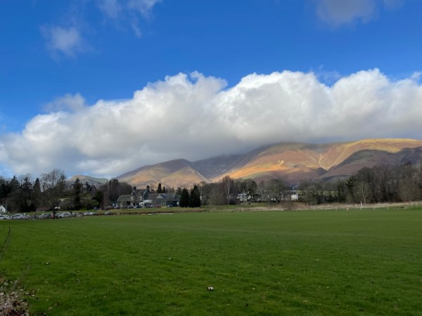 The massive presence of the mountain called Skiddaw towers over the Lakeland town of Keswick. The entire north-eastern horizon is dominated by its sheer size.