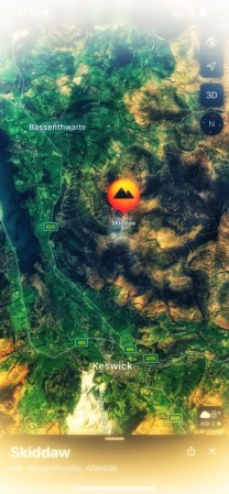 The opening shot was taken from the edge of Keswick, adjacent to the local football club’s car park. In the map image the location is next to the letter ‘K’ in Keswick. From this you can see how steeply the mountain rises from the edge of the conurbation.