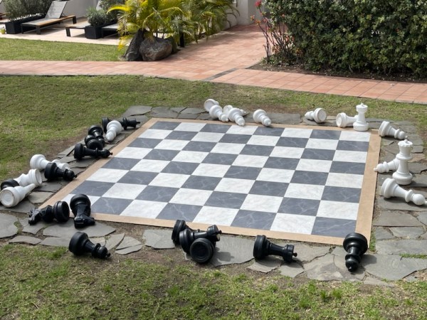 On the final day, we decided that nearly five hours on an aircraft warranted a pre-departure walk, even if it was just to stretch our legs. When we got to the place of the giant chess board, we were surprised at the scene of devastation before us….