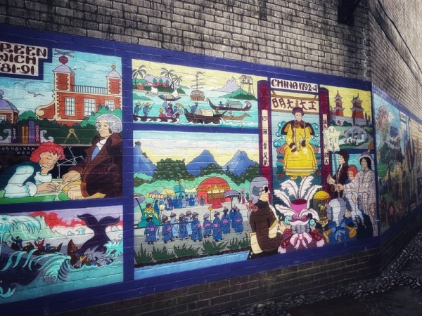 (Above: What appears to be a single mural opens up into ‘world of Ulverston’ along the walls of the alleyway)