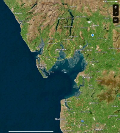 (Above: Ulverston is just off the northern edge of Morecambe Bay)