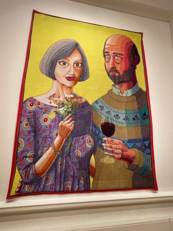 He’s clever; and being unusual and edgy has never bothered him. Two of the large tapestry sequences, each taking a full room of the gallery, depict a life story of an individual or couple as they develop from innocence to a life-finale.