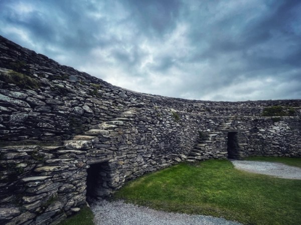 By the time we approached the large stone structure, the gale was actively trying to blow us back down… Donegal weather is not boring!