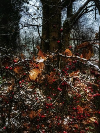 As a second stage, modern editing tools can be applied to bring out a small selection of colours as highlights – such as the those found in the mounds of leaves blown under the hedgerows. Berries are a big plus…