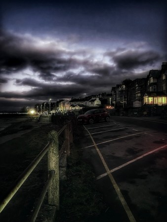 Ten minutes later, we’re in the small seaside village of Arnside. Ideally, we arrive with about thirty minutes of daylight left (currently around four p.m.)