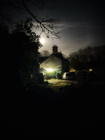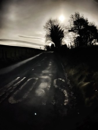 With nothing else to do except walk the poor collie until she was tired or cured, I got the iPhone out and began to play with ‘Night-mode’, switching the flash off and letting the lens and internal computers do their best against the darkness. There are no street lamps in Sedgwick; the village has a dark-skies policy.