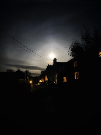 I don’t use a tripod, so half the shots were taken just standing up and holding the phone as steady as possible. The rest were taken jammed against a fence post, lamp-post or anything else that was tall enough to brace and steady the shots. I did, though, have the benefit of a bright and full-ish moon, which made all the difference at the ‘cold’ end of the spectrum.