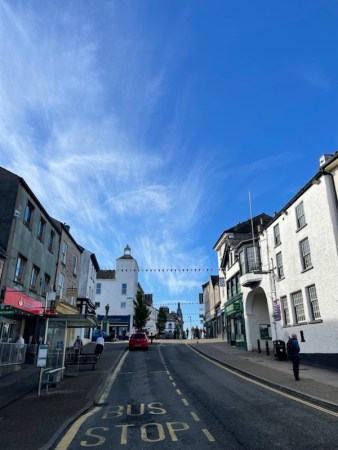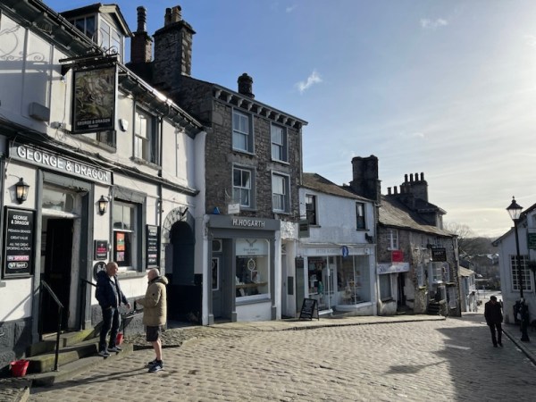 We emerge into Kendal’s Main Street – Stricklandgate – with the sunlight streaming along the old highway.
