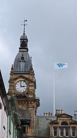 (Kendal’s Town Hall. Alfred Wainwright, the famous chronicler of Lakeland worked here as Borough Treasurer. Picture taken on a different day. )